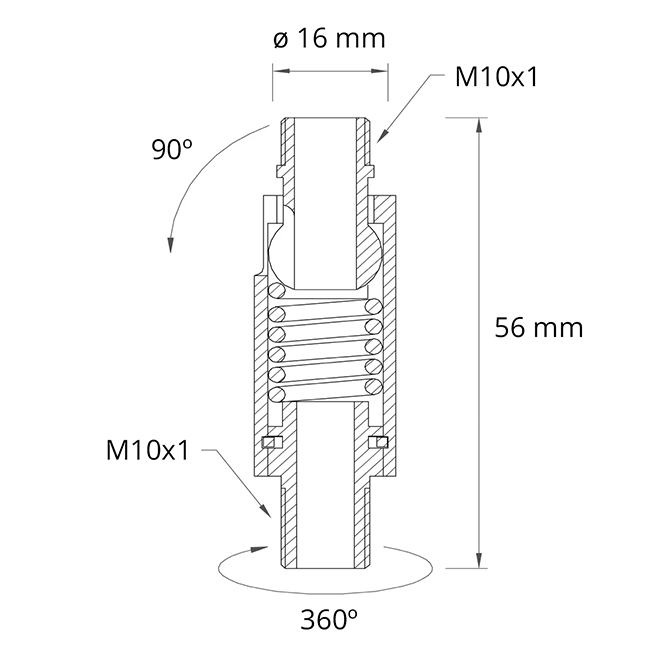 Adjustable male Brass Friction Lamp Swivel, Alt.5,3xD.1,6cm, M10x2 360°-90°