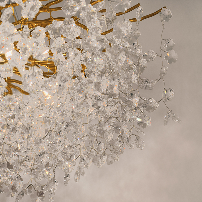 Made with clear crystal bars and golden plate, this product 150 cm long, 75 cm wide, regulable high.