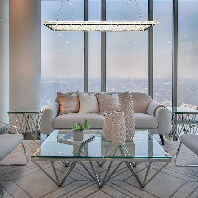 Within the Crystal Lamps collection, we present to you the ceiling lamp VARSÓVIA. The measures of this ceiling lamp model are of 120 cm long, 30 cm wide, regulable height, in transparent, chrome. It offers a luminosity of 5400 Lumens. This model contains 1 LED module of 68W.