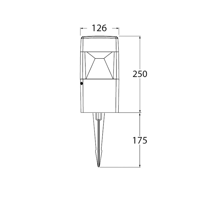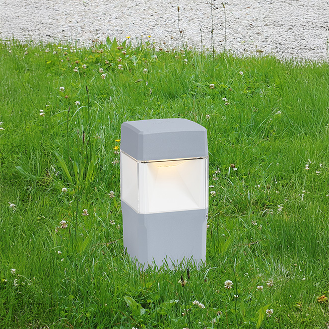 The measurements of this lamp model are 21.7 cm in height and 10 cm in diameter, in grey resin and PMMA opal diffuser (IP55).