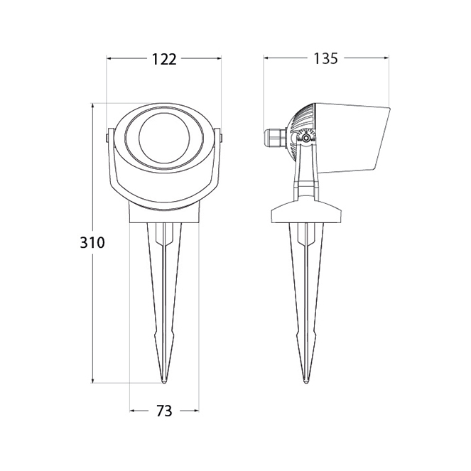 DWithin the Outdoor section, we present the TOMMY waterproof spike lamp. The measurements of this spike lamp model are 12.2 cm long, 13.5 cm wide, 31 cm high, in white resin and frosted PC diffuser (IP66). This model is complete with 1 included GU10 LED bulb of 6W that has a color selection button: 2700/4000K. It stands out for its quality seal from the prestigious Italian brand Fumagalli.