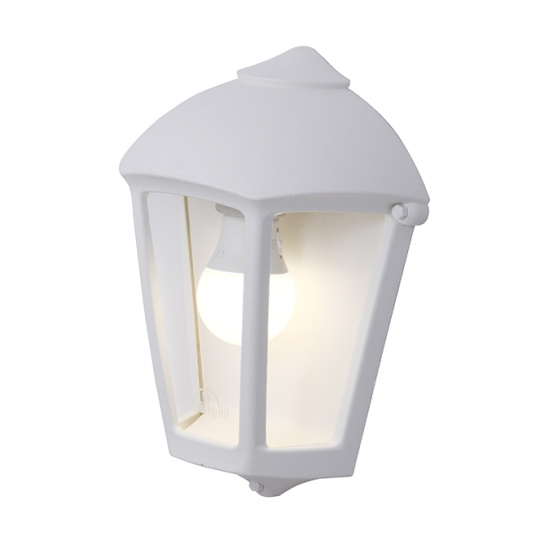 Within the Outdoor section, we present the FABIO waterproof wall light. The measurements of this wall lamp model are 21 cm long, 11,5 cm wide, 29 cm high, in white resin and PMMA clear diffuser (IP55). This model is complete with 1 E27 bulb. It stands out for its quality seal from the prestigious Italian brand Fumagalli. Packed in plastic.