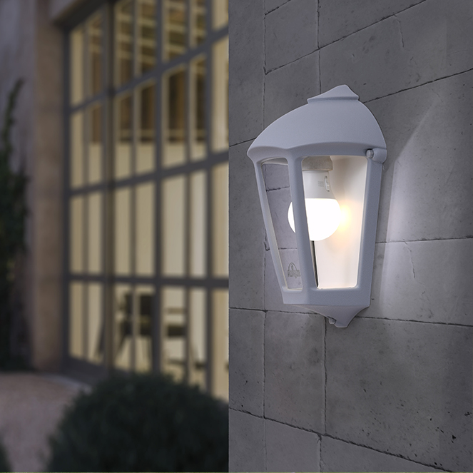 Dentro da secção Exterior, apresentamos o aplique estanque FABIO. As medidas deste modelo de aplique são de 21,5 cm de comprimento, 11,5 cm de largura, 29 cm de altura, em resina cinzenta e difusor transparente em PMMA (IP55). Este modelo fica completo com 1 lâmpada E27. Destaca-se pelo selo de qualidade da prestigiada marca italiana Fumagalli. Embalado em plástico.