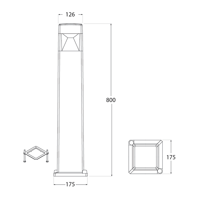 Dentro da secção Exterior, apresentamos o pilar estanque ELISA. As medidas deste modelo de pilar são de 12,6 cm de comprimento, 12,6 cm de largura, 80 cm de altura, em resina cinzenta e difusor transparente em PMMA (IP55). Este modelo fica completo com 1 lâmpada LED GX53 incluida de 10W que possuem um botão de selecção da cor: 2700/4000/6500K. Destaca-se pelo selo de qualidade da prestigiada marca italiana Fumagalli.