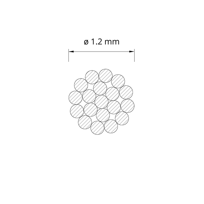 Cabo de aço zincado (19 fios x D.1,2mm) (Rolo 100m) (CRD5 - CA 1.2 ZI)