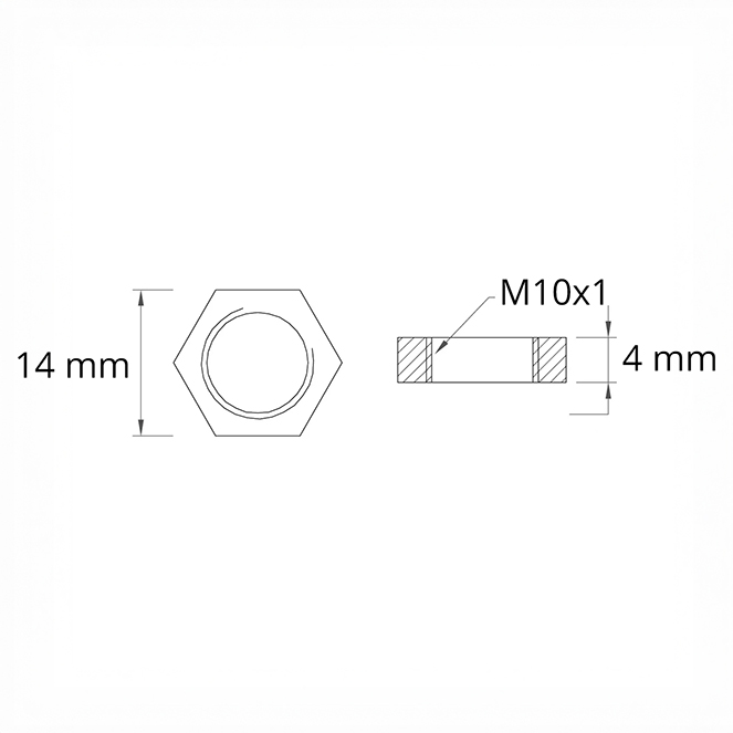 Porca hexagonal Alt.0,4xD.1,4cm M10x1, em ferro zincado (PORCAS 14X4)