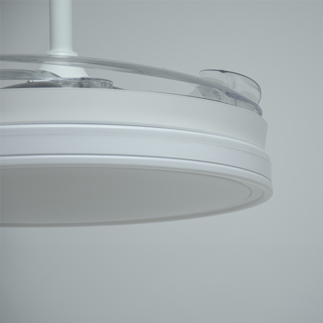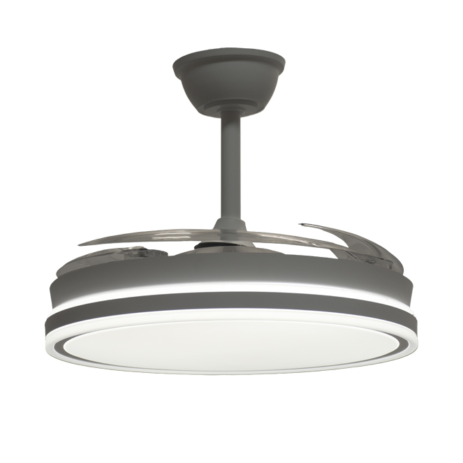 Ventoinha de tecto ASGARD II com luz, 4 palas retráteis e motor DC com 6 velocidades.