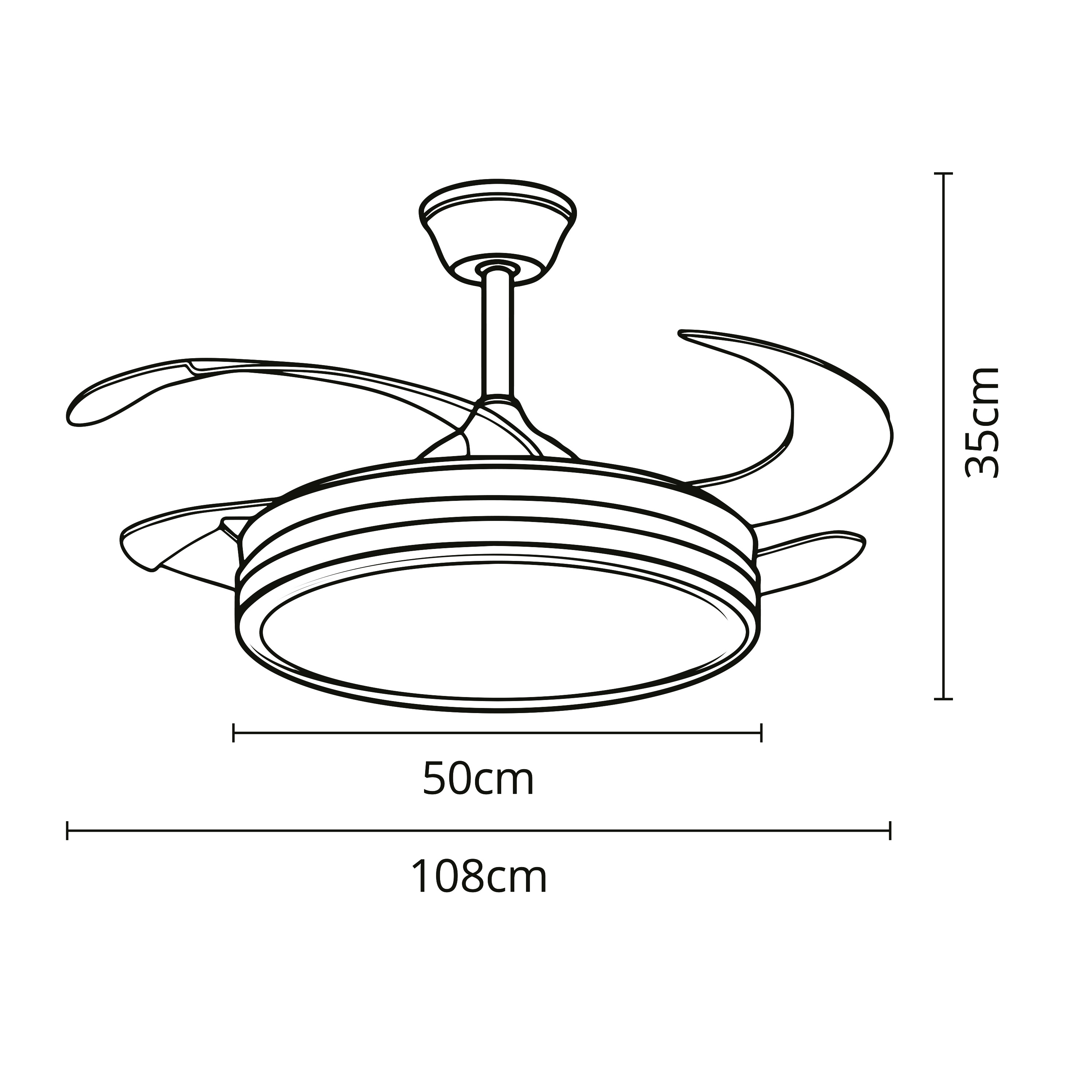 Ventoinha de tecto ASGARD II branca, 4 palas retráteis, 72W LED 3000|4000|6000K Alt.35/45xD.108/50cm