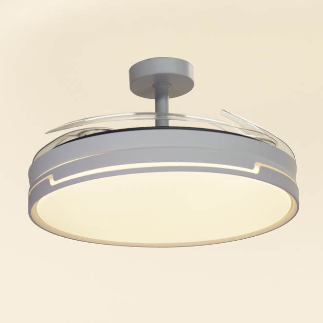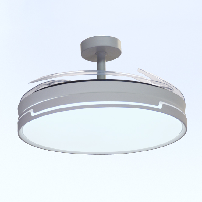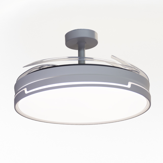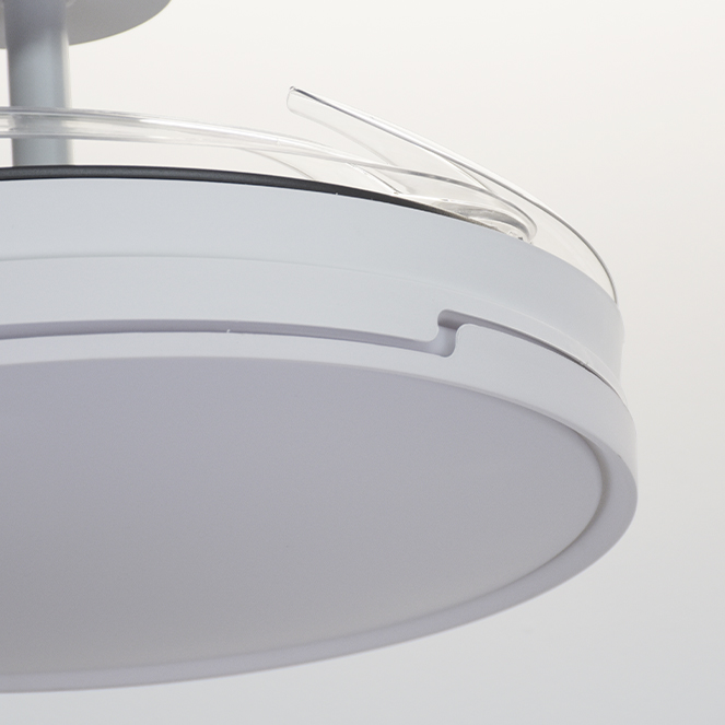 Ventoinha de tecto ROBIN ECO com luz, 4 palas retráteis e motor DC com 6 velocidades.