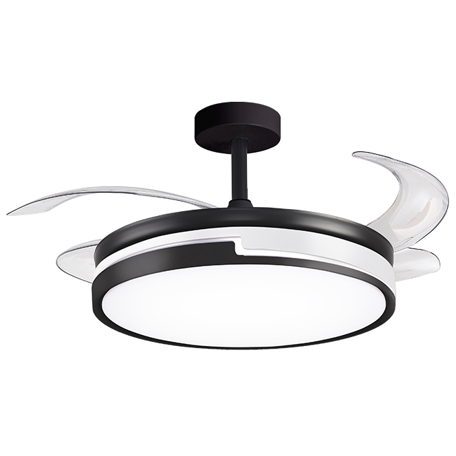Ventoinha de tecto ROBIN ECO preta, 4 palas retráteis, 72W LED 3000|3500|6000K, Alt.30/40xD.107/50cm