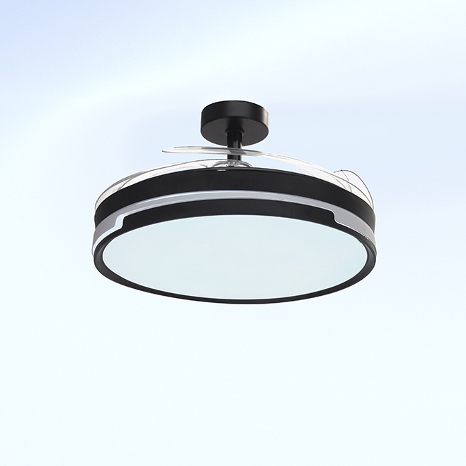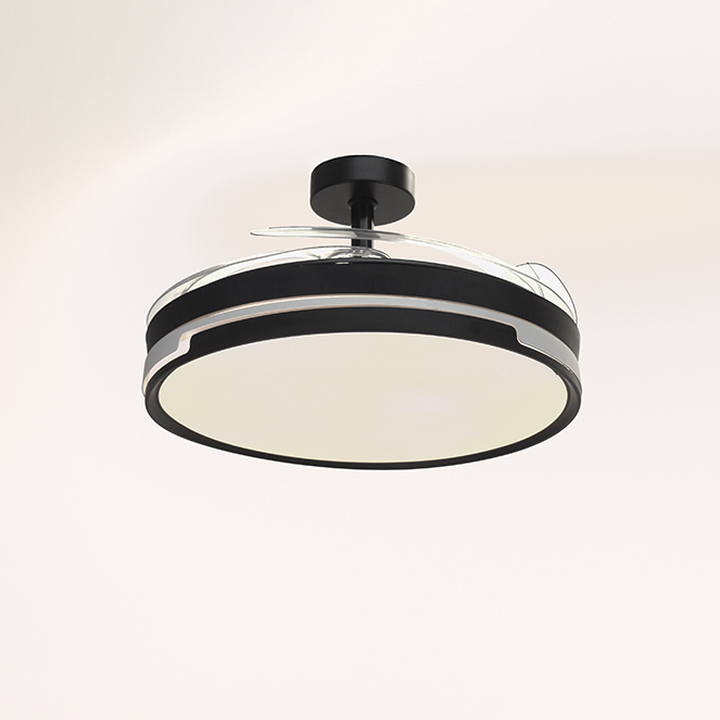 Ventoinha de tecto ROBIN ECO com luz, 4 palas retráteis e motor DC com 6 velocidades.
